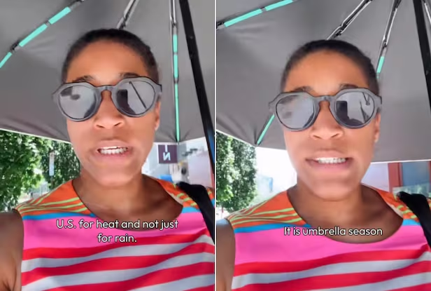 美国的一名短视频博主安伯·弗格森发布了自己撑伞走在路上的视频,并在视频中宣传遮阳伞的效果。她说,帽子和风扇都没用,“在这种炎热的天气里,唯一能阻止我融化的就是伞。”截至目前,这段视频获得了36.8万点赞,引起了人们对遮阳伞的极大关注。